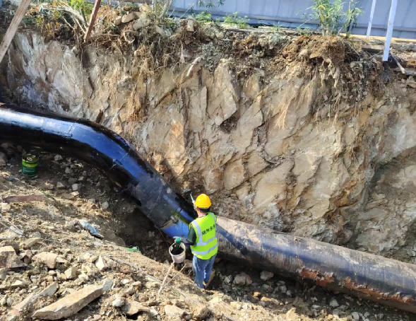 此次施工面臨雙重考驗:一方面,施工區(qū)域巖石硬度極高,破碎開挖難度遠超常規(guī)工程;另一方面,管網(wǎng)鋪設(shè)需趕在人行道施工前完成,一旦延誤,不僅會拖慢隨城山大道整體建設(shè)進度,還需額外破拆新建路面,造成工期延長與成本增加。面對“時間緊、任務(wù)重、難度大”的困境,水務(wù)集團城南項目部主動扛起責(zé)任,將其作為“民生攻堅硬仗”全力推進 。