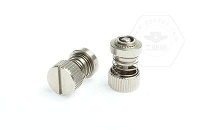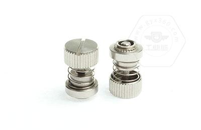 • 產品描述:彈簧螺釘,又叫松不脫螺釘,其為松但不脫落的螺釘。彈簧的功能使其整個部件不脫出且便于自由伸縮。彈簧螺釘由手擰套、螺釘、彈簧、壓鉚套四個部分組合而成。手擰套一般有直紋拉花,有拉花防滑效果比較好,切又拉花擰緊時會比沒有拉花的擰的更緊。