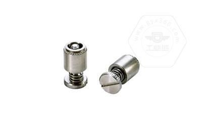 手緊螺釘?shù)膲恒T套具有壓花齒,壓裝于于機箱或薄鈑孔內(nèi)(:薄板的鉆孔徑相對應彈簧螺釘?shù)膲糊X徑有一定要求的,形成一個外露的彈簧螺釘,用手擰另一端(即手擰端).因其里面固定有彈簧,螺釘相對于薄板的另一端來回進出。