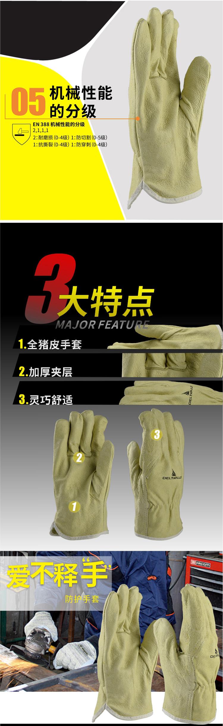 DELTAPLUS代爾塔 全豬皮搬運(yùn)勞保手套的產(chǎn)品圖片