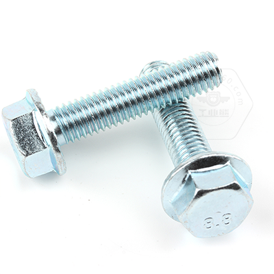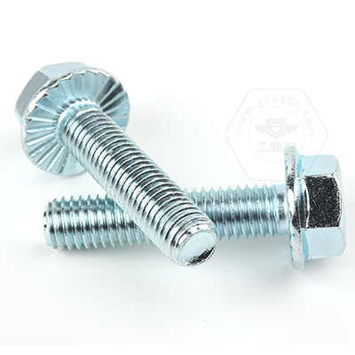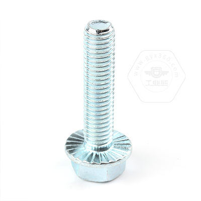 工業(yè)熊碳鋼8.8級(jí)藍(lán)白鋅六角法蘭面全牙螺栓加大系列平頭帶齒GB5789